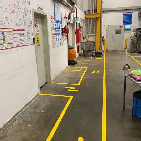 Fabrika içi yürüyüş yolları, çalışanların üretim alanları içerisinde güvenli biçimde hareket etmesini sağlayan, net şekilde işaretlenmiş yaya alanlarıdır. Saer Trafik, işçi sağlığı ve güvenliği yönetmeliklerine uygun yürüyüş yolu çizgileri tasarlayarak iş kazalarının önüne geçmeyi hedefler.