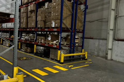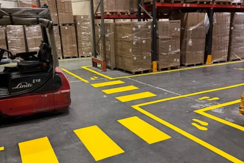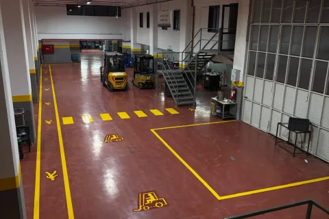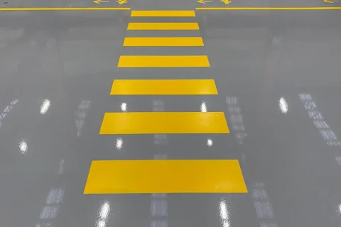 Çevre iş güvenliği çizgileri sayesinde işyeri araçları ve yayalar arasında güvenli bir mesafe oluşturulur ve trafik düzeni sağlanır.