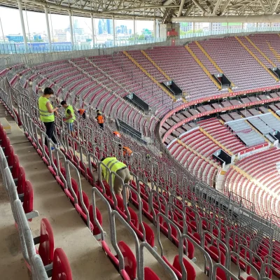Profesyonel uygulamalar, tribünlerin uzun süre ilk günkü görünümünü korumasını sağlar.